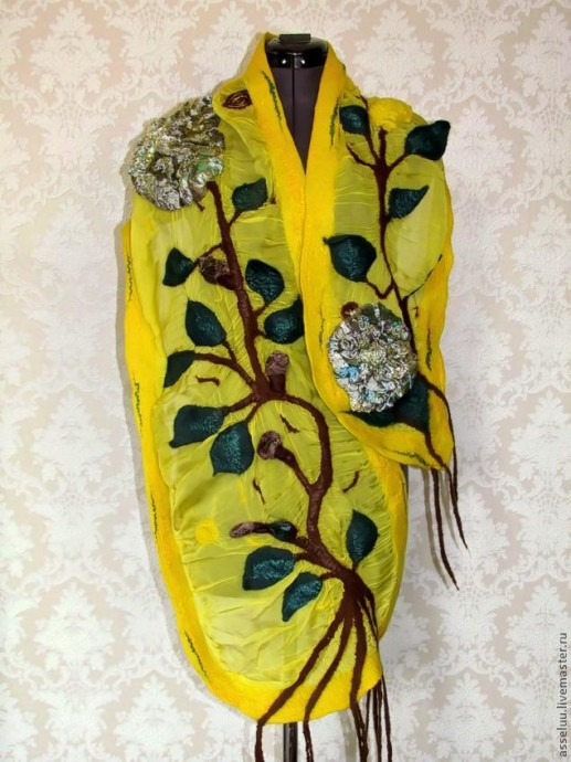 Мастер-класс по валянию цветка "Вьюнок": часть 5 Автор "Магия войлока". Когда размер заметно уменшится и войлок станет плотнее, можно дальше валять руками как угодно. Тереть о коврик, в полотенце катать , в руках, только обязательно меняя направление, чтобы уваливание было равномерным. Не забываем про стебелек и прокативаем его в коврике. После катания в коврике, необходимо сбрызнуть заготовку водой и потереть мылом, расправляя и подваливая тычинки, листик, стебелек. Когда размер значительно уменшится,...