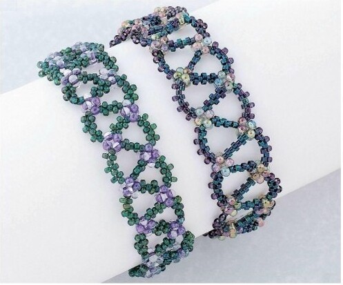 Браслеты из бисера Сочетание зеленого и фиолетового - беспроигрышный вариант.