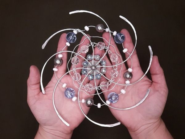 Спиральное чудо: часть 5 Спиральное чудо: часть 5 Автор Лена Серёжкина. После этого круга у меня как раз закончилась проволока. Чтобы закрепить конец проволоки, нужно сделать несколько плотных оборотов и обрезать лишний кончик. Оформляем край снежинки На этом промежуточном этапе мы должны подумать над оформлением края снежинки. Я снова призываю вас творить свои неповторимые снежинки, а не только копировать эту! Поэтому сейчас я дам вам пару идей, как еще можно оформить кончики наших лучей. Строго говоря, прав... Добавить в закладкиНазначить теги Спиральное чудо: часть 4 Спиральное чудо: часть 4 Автор Лена Серёжкина. Теперь можно подумать над оформлением подробнее: разложить бусины на заготовке, посмотреть как они вписываются по цвету и размеру; что-то убрать, а что-то добавить. После того, как вам понятна последовательность рядов бусин - продолжаем плетение, но теперь уже с бусинами. Дальше всё совсем просто: там где мы остановились, делаем несколько оборотов вокруг основы и надеваем бусину на тонкую проволоку, потом переходим на соседний лучик снежинки и делаем там од... Добавить в закладкиНазначить теги Спиральное чудо: часть 3 Спиральное чудо: часть 3 Автор Лена Серёжкина. Так мы продолжаем движение по кругу несколько оборотов, заплетая центр. Тут наши основы перестают "гулять" и укладываются в одну плоскость. После каждого круга хорошо бы прижимать витки к основе выпрямляя её. Можно это делать прямо пальцами на столе. И продолжаем заплетать центр. После каждого круга не забываем прижимать и ровнять заготовку. Можно и так, работать инструментом как прессом. Мы сейчас закладываем основу нашей снежинки, её крепкость и ровност... Добавить в закладкиНазначить теги Спиральное чудо: часть 2 Спиральное чудо: часть 2 Автор Лена Серёжкина. Когда два оборота сделаны, мы подставляем следующий уголок вплотную к первому, переходим на вторую заготовку и делаем также два оборота вокруг уголка. Тут будет неудобно: основы распадаются, тонкая проволока ничего не держит. Сейчас это нормально - просто продолжайте по схеме и не накручивайте здесь больше оборотов, а то будет неаккуратная серединка снежинки Вот здесь у меня уже три уголка оплетены. Они все вихляются и это нормально на этом этапе, не пугайт... Добавить в закладкиНазначить теги Спиральное чудо: часть 1 Спиральное чудо: часть 1 Автор Лена Серёжкина. Проволока и бусины - это понятно, но зачем же банка с лечо?- спросите вы. А я отвечу - мастер не должен быть голодным Ну и крупная круглая основа для формы нашей снежинки тоже создана вокруг этой банки. Приступим Создаём основу: Проволока любит, когда её гладят! Это правило может повесить себе на стену каждый начинающий мастер wire wrap. И мы начинаем с того, что проглаживая, выпрямляем толстую проволоку, а потом аккуратно накручиваем вокруг банки.... Добавить в закладкиНазначить теги