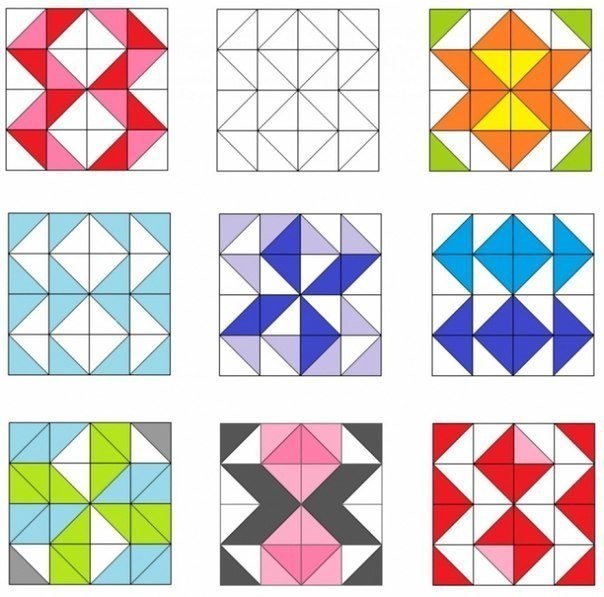 Образцы лоскутных блоков с использованием квадратов и треугольников
