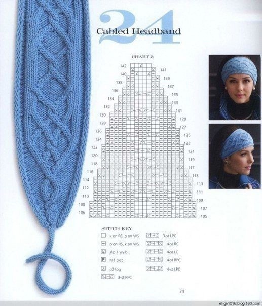 Вязаная повязка на головуВам потребуется: 100 г пряжи (65% шерсть, 35% альпака 75м/50г), спицы №4,5. Узоры: по схемам № 1, № 2, № 3. Платочная вязка: лиц. и изн. рядылиц. петл...
