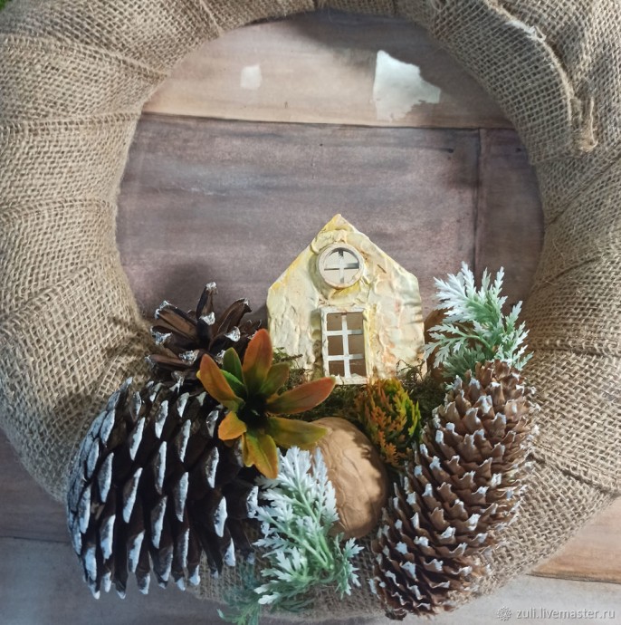 Часть 4 https://www.diyideas.ru/45264-rozhdestvenskii-venok-s-shishkami-i-domikom-chast-4.html