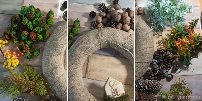 Часть 1 https://www.diyideas.ru/45246-rozhdestvenskii-venok-s-shishkami-i-domikom-chast-1.html