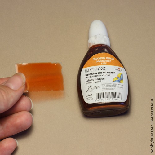 Теперь нужно вставить «стекло». Для этого я использовала тонкую прозрачную обложку для переплета, тонированную с помощью витражной краски.