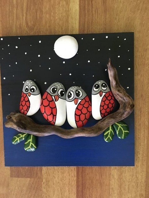 Оригинальные композиции из камушков с росписью могут быть одновременно памятью о поездке на мореи необычным украшением интерьера.