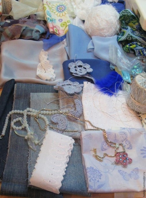 Для создания колье подойдут и обрезки джинсовой ткани тоже.