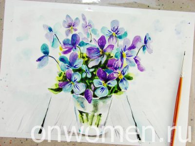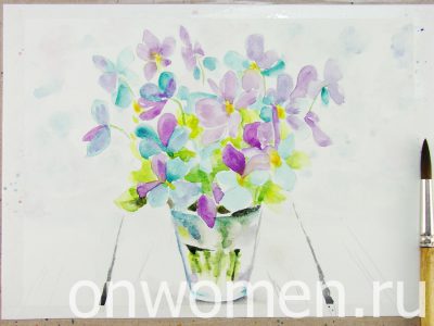 Фиалки акварелью