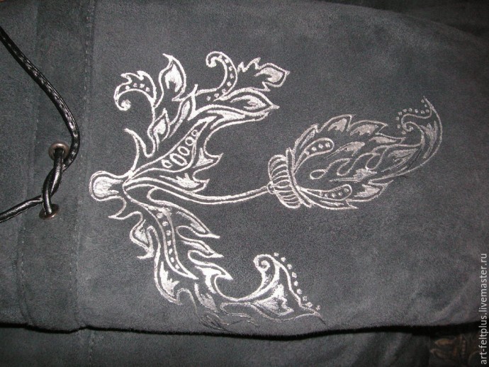 Копируем рисунок и распечатываем. Можно немного увеличить рисунок. Лучше иметь несколько распечаток, ведь для росписи будем использовать разные фрагменты основного рисунка. Если художник из вас неважный, наносим мотив с помощью копировальной бумаги отличного от дубленки цвета. При этом слегка продавливая карандашом узор, ставим не очень густо точки по контуру.