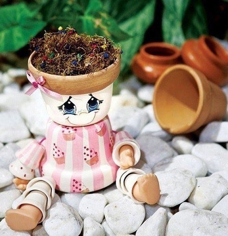 Идеи поделок с использованием горшков порадуют своим веселым видом.