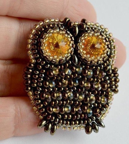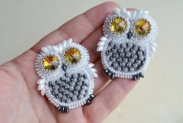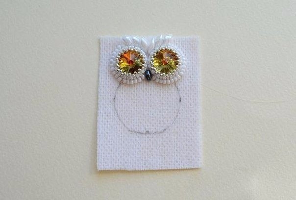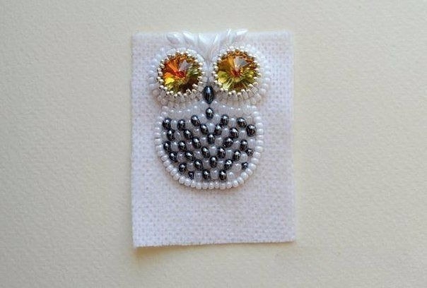 Детальные шаги, как вышить брошь Полярная сова из бисера