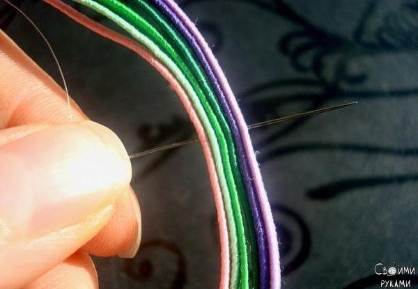 Сутажная брошь с ракушками: мастер-класс, часть 2Автор Анастасия Самойлова5. Сшиваем 2 сутажных шнура (в одной точке), отступив 4 см от края.6. Пришиваем сутаж от одной точки вообр...