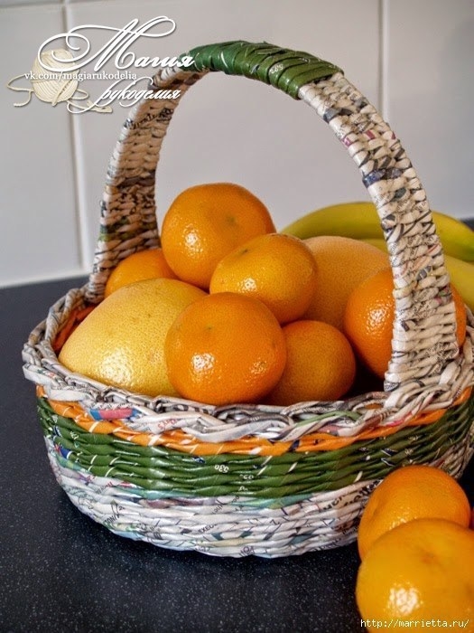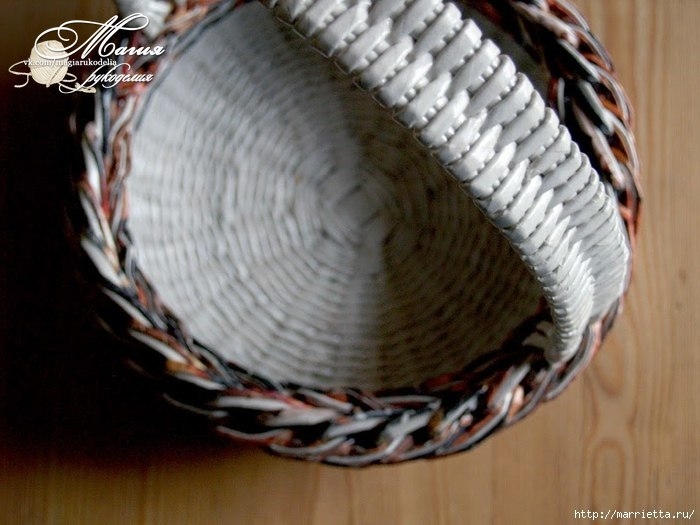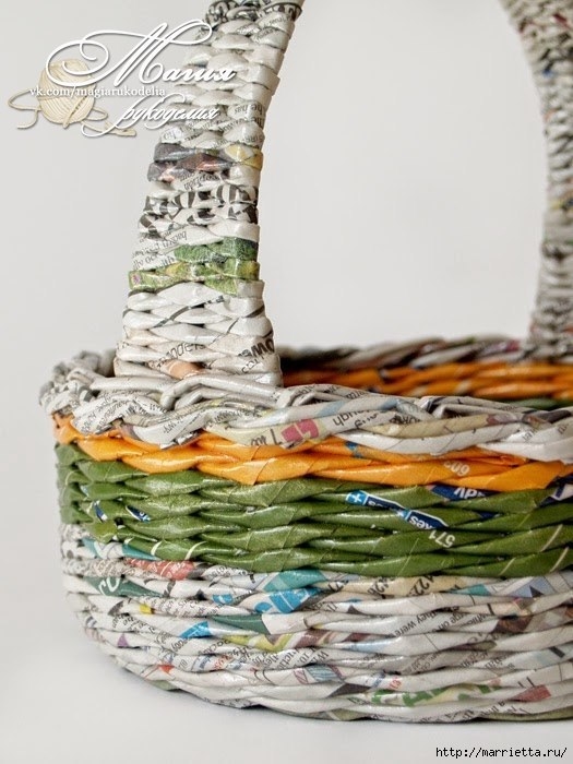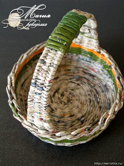 Корзинка: плетение из газетТакие изделия нуждаются в качественной обработке лаком для более длительной сохранности.