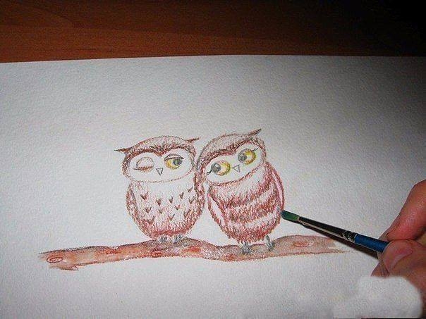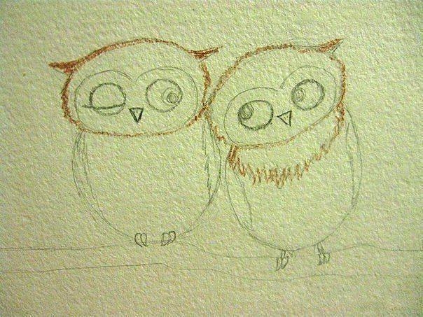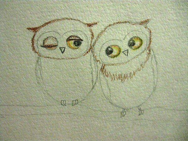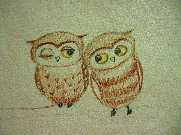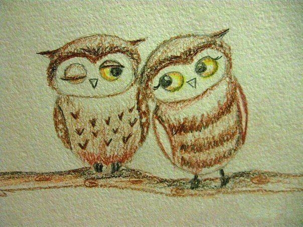 Детский рисунок с совушками подарит радость творчества взрослым по той простой причине, что рисовать любовь это всегда счастье.