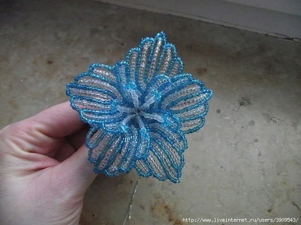 Простой цветок из бисераИнтересный элемент украшения для жаркого летнего периода.