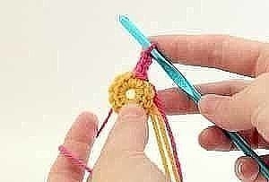 Захватить нить и протащить ее через все петли на крючке. (Один лепесток готов.) 2 в.п., СС в следующую петлю