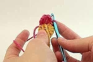 2 р.: Другим цветом СС в первую петлю, *3 в.п.,