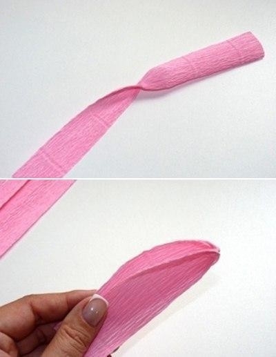 Роза из гофробумагиАвтор Бормотова Светлана.При создании этих роз лепестки из гофробумаги дублируются: красный сверху, белый снизу.При этом белые чуть короче красных, чтобы красные...