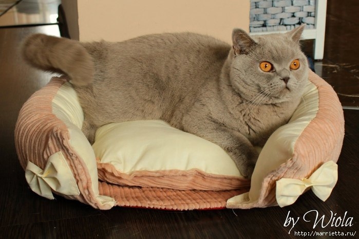 Данная кроватка сшита из теплого вельвета, ткань можно купить, но еще лучше, если вы используете свою старую одежду. На этой кроватке для украшения использованы бантики, так как...