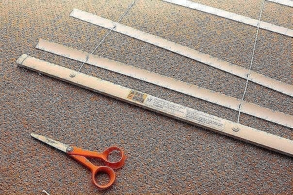 Рано или поздно жалюзи выходят из строя, ломаются. Их и можно использовать. В крайнем случае можно вместо пластиковых реек использовать очень плотную тесьму, настрочив ее на полотно, (ламели от жалюзи тут приклеиваются с помощью клея из пистолета). К пристроченой тесьме пришейте колечки по бокам, отступив от бокового края шторы 3-5 см. Снизу в подгиб шторы прижется вставить для жесткости деревянный штапик или что то, что не даст шторе провисать, там же закрепить кончики шнуров с двух сторон шторы, по бокам. Пропустить шнурок через пришитые к тесьме колечки вверху тоже нужен деревянный брусок с колечками. Как это сделать можно найти в Ютубе по запросу "Римская штора своими руками."