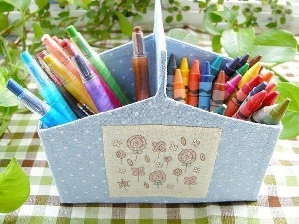 Корзина для мелочейКорзина для мелочей может быть выполнена из картона, обтянутого тканью.