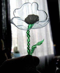 Цветок из пластиковой бутылки для дачного декораТакой цветок прослужит вам не один год.
