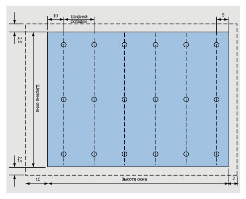 •Шнур, три отреза. Каждый из расчета 2 длины шторы +1 ширина шторы.