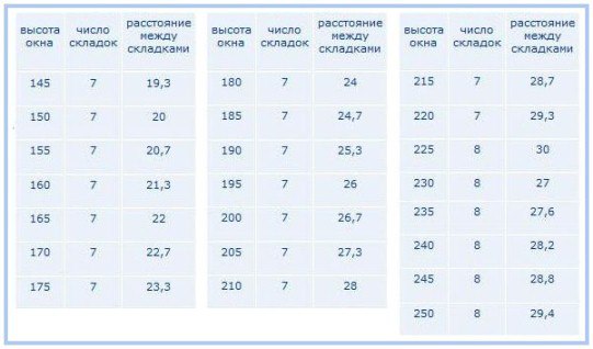 Раскрой римской шторы. Правильно измерьте оконный проем, прибавьте + 5 см на боковые швы и +12-15 см на припуски вверху и внизу римской шторы. Чтобы сшить римские шторы своими руками, рассчитайте необходимое количество и размер складов в зависимости от длины будущей шторы (см. таблицу).