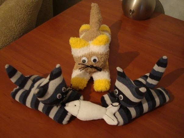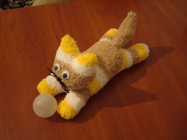 Не хотите сшить для своих малышей игрушку? Это совсем несложно и весьма забавно. Для работы вам понадобятся 2 новеньких носочка, иголка с нитками, черные круглые бусинки, для гла...