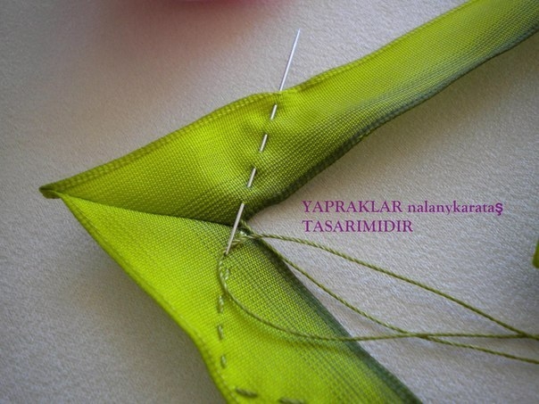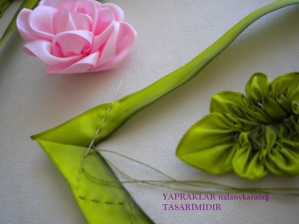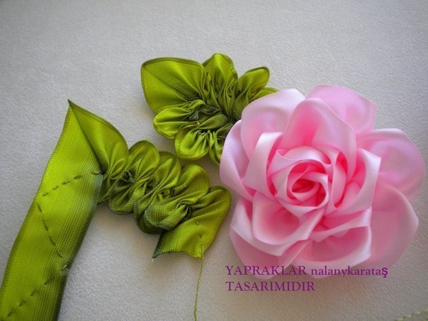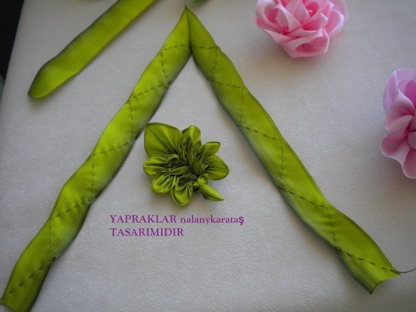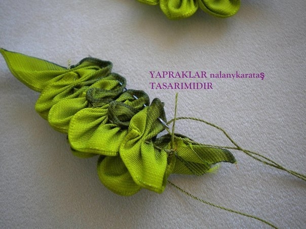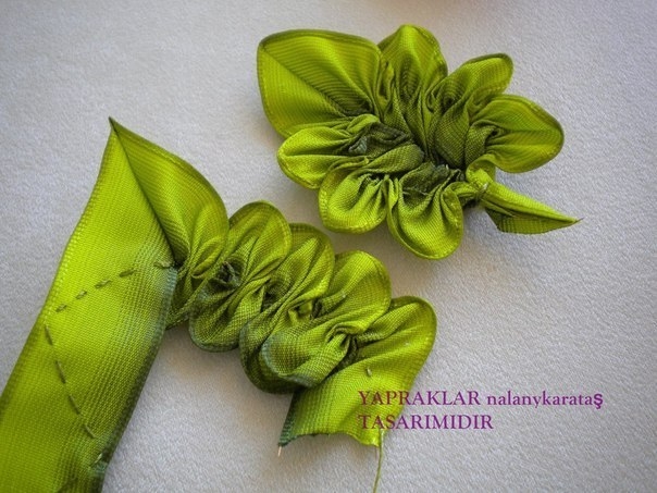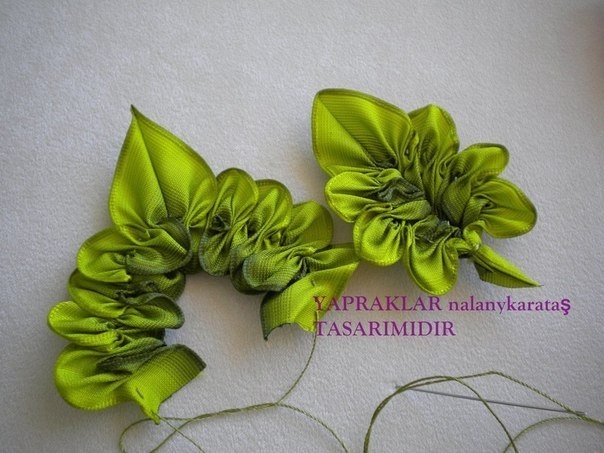 Очень красивые листья из атласных лент