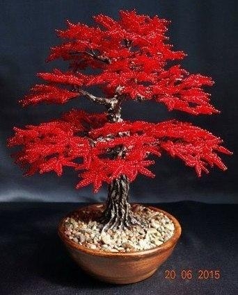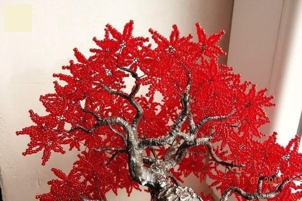 Осеннее дерево из бисера легко превратится в летнее, если выполнить в зеленом цвете.