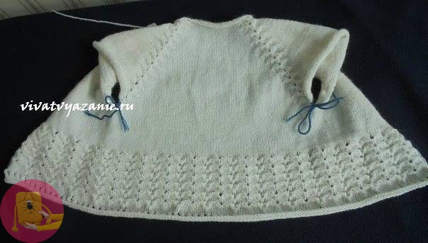 После вывязывания первого ряда распределены петли для РЛ, спинки и рукавов.