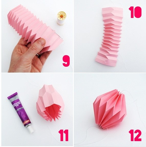 Бумажная люстраВажно:Выбирайте лампочки, которые не нагреваются.Вам понадобится: китайский фонарик,белая бумага,клеевой пистолет.Порядок работы: Из квадратного листа бумаги с...