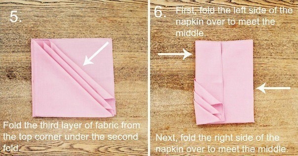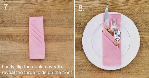 Салфетки, сложенные в виде трех кармашков, очень простой и красивый способ сервировки праздничного с