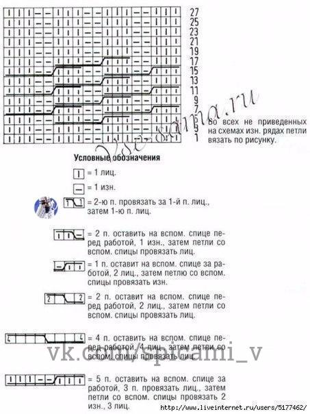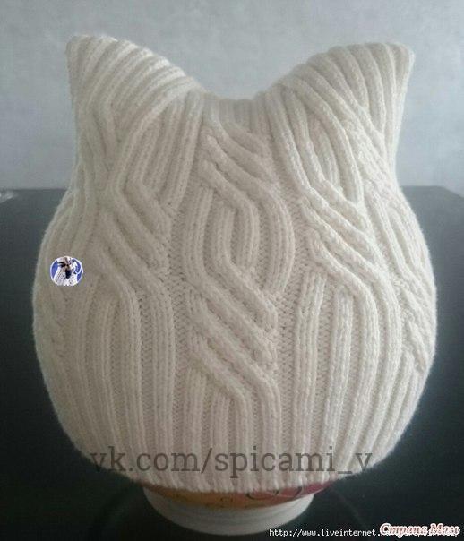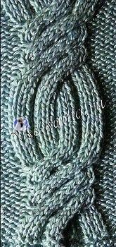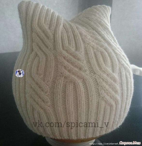 Описания, как такового нет. Вязала из головы. Прямоугольничек простой. На резинку 2х2 набрала 192 петли. Вязала по кругу. Рапорт - 16 петель. Разделила на 12 участков по 16 петель. По бокам участки резинкой 2х2. А по середине и сзади 5 участков для узора. Узор коса взята из интернета и мною чуть изменена, чтобы не так стягивало. Чередовала на 16 петлях. Затем, ближе к макушечке сделала убавки ближе к центру. Петли сверху закрыла и сшила сильно стягивая...макушечку надо стягивать сильно-сильно. У меня сильно, но не очень. Надо очень, тогда ушки по краям будут скругленные!!! Будет наверное красивей!!! Вот пожалуй и все.. За основу использовала узор Выпуклая коса, но переделала его под 16 петель. И перехлесты чуть поменяла.