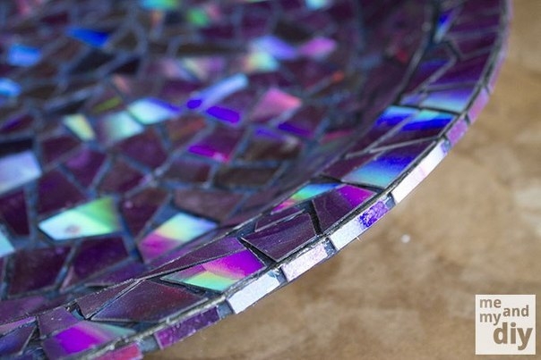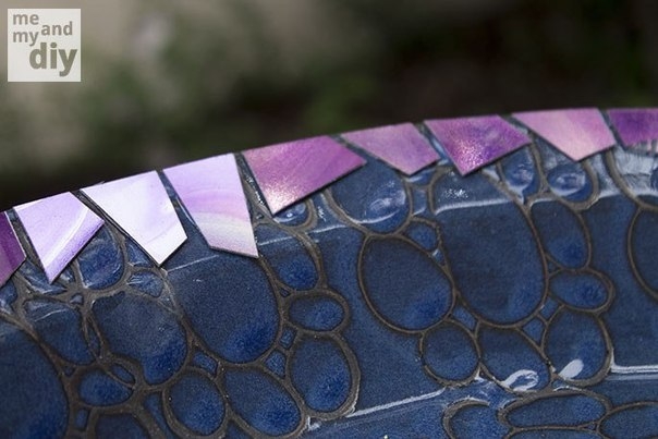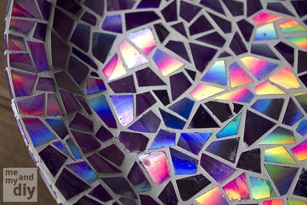 Декор Садовой вазы с помощью мозаики из старых CD-дисков