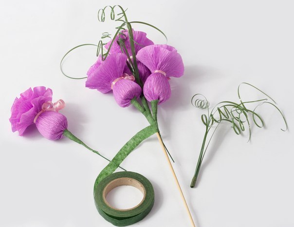 Сладкий букет "Три орешка": часть 2Так завернем все три конфетки.В основание орешка( в закрутку) воткнем зубочистку и примотаем орешек к зубочистке скотчем, очень надежно, плотно. ...