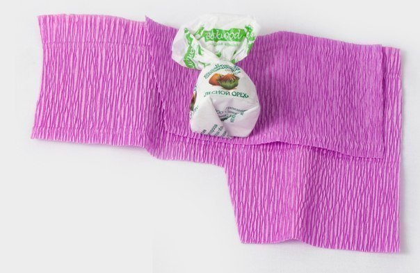 Сладкий букет "Три орешка": часть 3Поработаем на каждым листочком.Переходим к сетке. Складываем квадрат вчетверо и вырезаем форму листика, оставляя середину цельной.Разворачиваем, ...