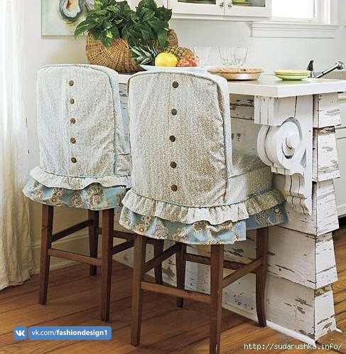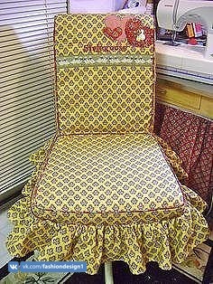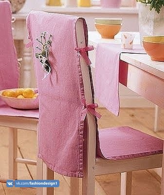 Стильные чехлы на стульяСтулу можно придать более изысканный вид, если сидушку сделать из дорогой красивой ткани.Это намного дешевле, чем покупать новый стул.