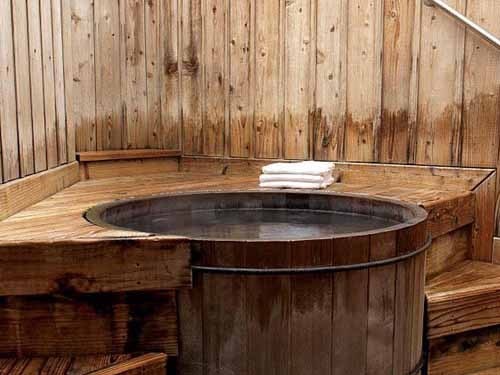 После сауны можно прыгнуть в деревянную бочку с ледяной водой!