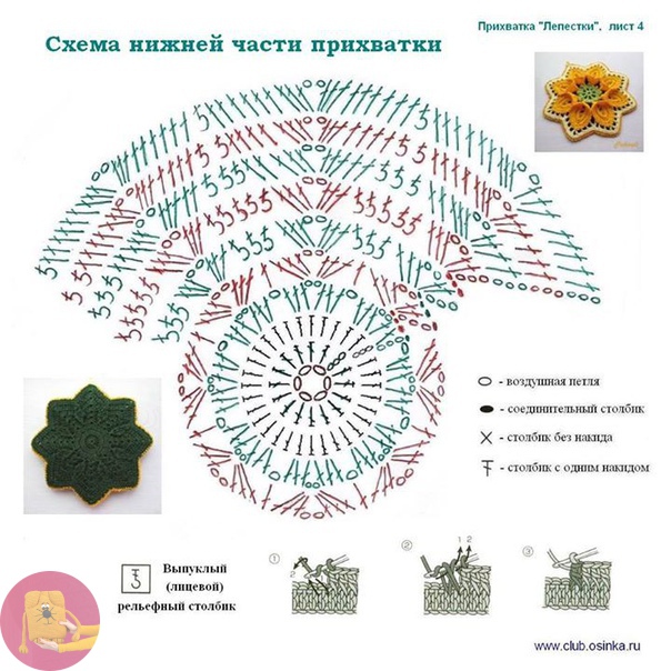 Яркие прихватки крючкомЯркие прихватки можно связать крючком, использовав эти необычные красивые схемы.