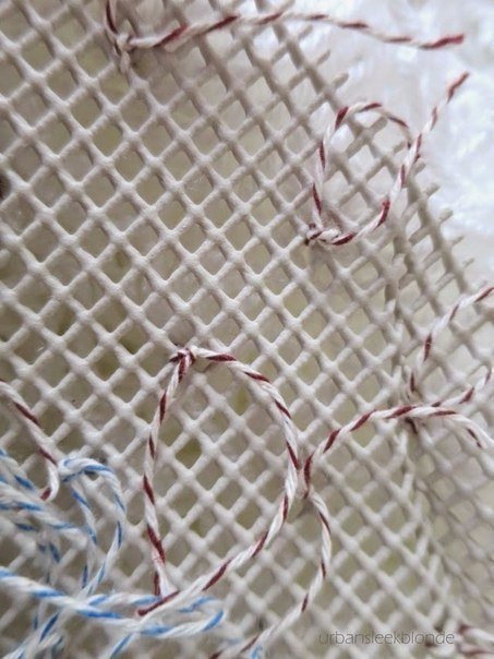 Я когда-то таким образом делала наволочку для диванной подушки. Только нитки не завязывала, мне кажется, это очень долго, а пользовалась крючком: вытягивала за серединку петельку, протаскивала в нее оба кончика и затягивала. Удобно и быстро. Можно разные рисунки создавать по типу вышивки крестом.