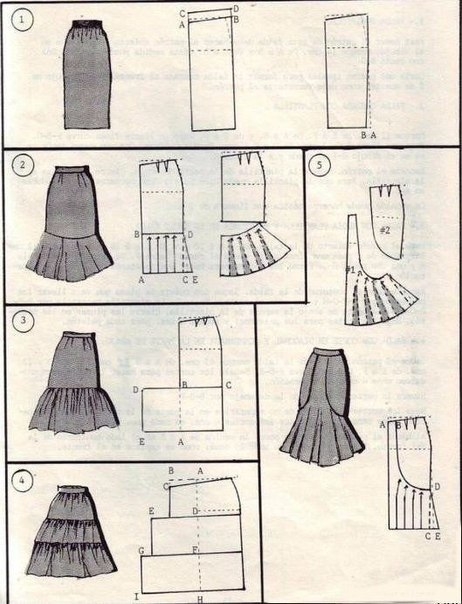 Шьем юбкиМоделирование разных вариантов приведено ниже.