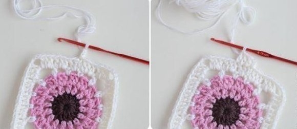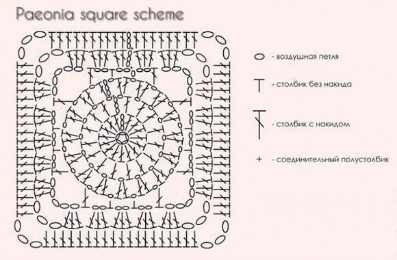 Вяжем квадратный мотив Paeonia