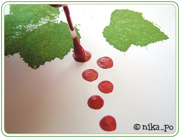 Красная смородина из эпоксидной смолы: часть 3Автор Елена Гребенникова.20. Замешав краски в подходящей емкости (колпачок от духов), окунаю ягоды и собираю капли краски о край колпа...