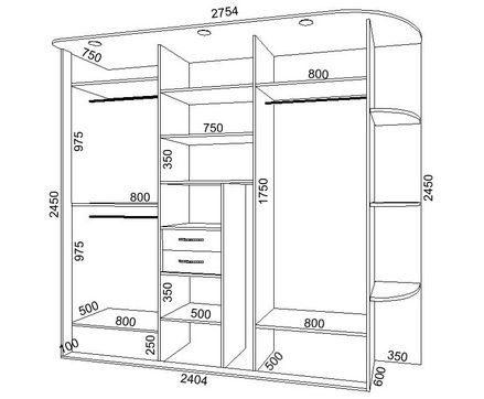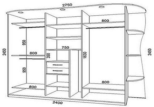 Продумываем чертёж шкафа - габариты шкафа-купе, сколько секций в шкафу, количество полок, нужны корзины или ящики, где будет штанга для одежды и т.д. Определится с видом и функционалом шкафа помогут бескрайние просторы интернета, т.к. вариантов шкафов-купе там бесчисленное множество.