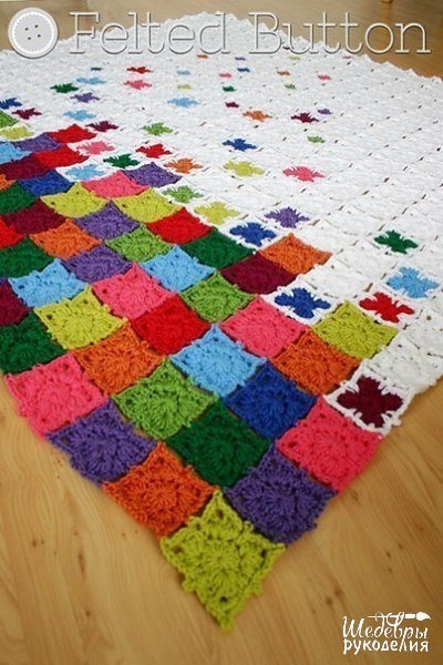 Яркий и красочный плед из квадратных мотивов