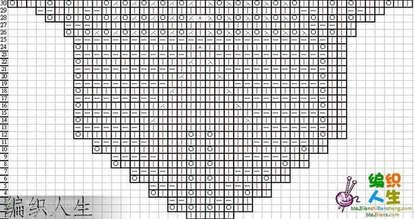 Условные обозначения:О - накид,в чётных рядах вязать изнаночной. Штрих вправо - 2 петли вместе лицевой,штрих влево - протяжка: 1 петлю снять,не провязывая на правую спицу,след...