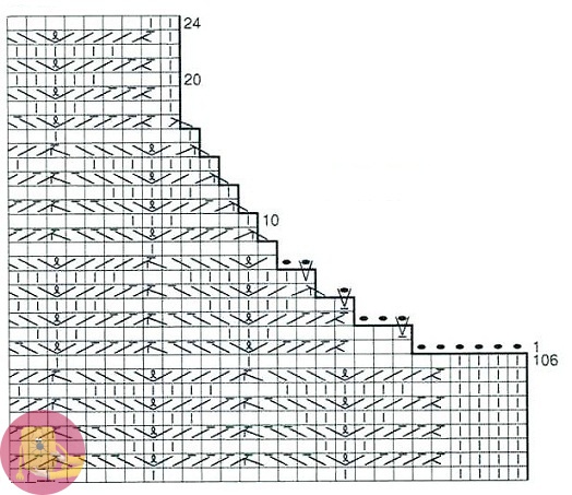 Вяжется регланом сверху, после резинки и ложной кеттлевки, вывязывается росток.Линия реглана связана чулочной вязкой на 6 петлях. Узор очень легкий, вяжется быстро. Ниточ...
