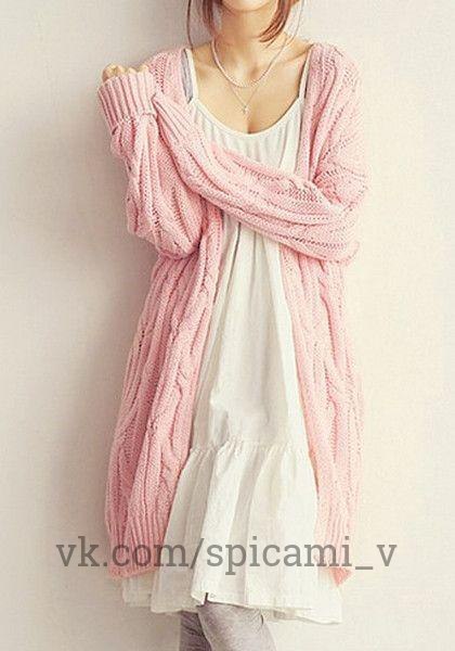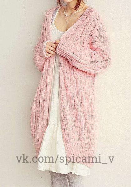 Уютный длинный кардиган с красивыми переплетениями из кос