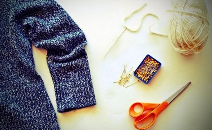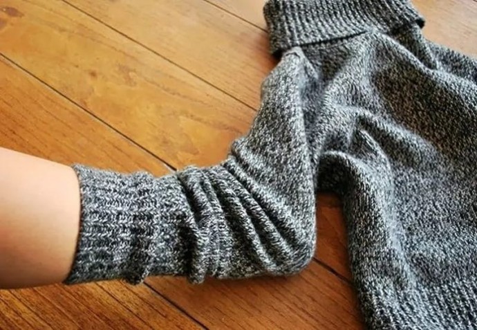 3. Наденьте рукав свитера на ногу, отрегулируйте нужную вам длину.